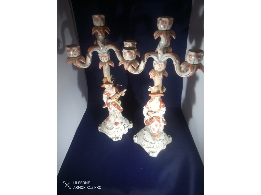 Nádherné a masivní svícny, bez poškození. Doba vzniku - ? Výška 36cm, šířka v horní části 18cm, váha 917g a 888g - dohromady 1.805g